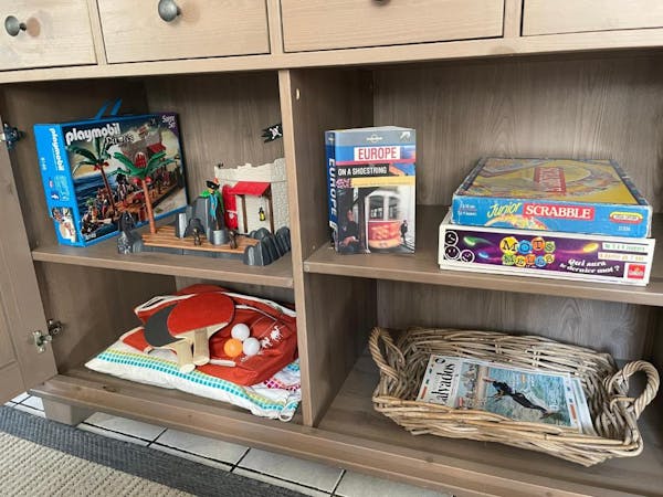 - Schlafzimmer im Obergeschoss: 1 Doppelbett, 1 Einzelbett.