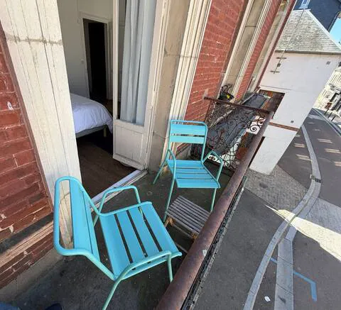 - Balkon met twee stoelen en een tafeltje